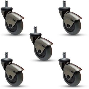 Upgrade your office or home chair's mobility and style with our premium 5-Pack 3" Space Gray on Gray Thermo Rubber Wheel LUX Swivel Chair Casters. Meticulously designed with a sleek space gray mirror finish, these casters blend seamlessly with any chair design, adding a touch of sophistication to your workspace.