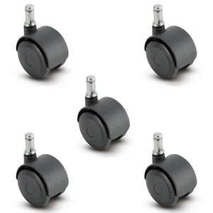 Set of 5 Self-Braking Chair Casters | Lock When Unoccupied, Roll When Seated | 50 mm Diameter Wheel | 5 Piece | Supports 375 lbs Per Set of 5