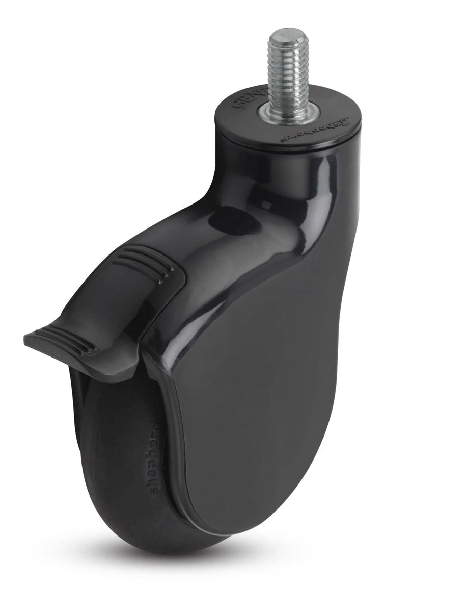 Our Genesis casters with a 1/2"-13UNC x 1" Threaded Stem provide a clean, quiet, and effortless solution to many electrical and medical needs. A polished, glass-filled nylon body with integrated thread guards provides strength and rigidity while concealing components and reducing debris entanglement. Sealed precision bearings in the raceway and wheel provide easy, effortless swivel action. Soft, non-marking MonoTech wheels reject debris and are excellent on hardwood and carpeted floors.