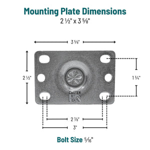 3.5"x1.25" Polyolefin Delrin Bearing Swivel Caster: Technical Specifications