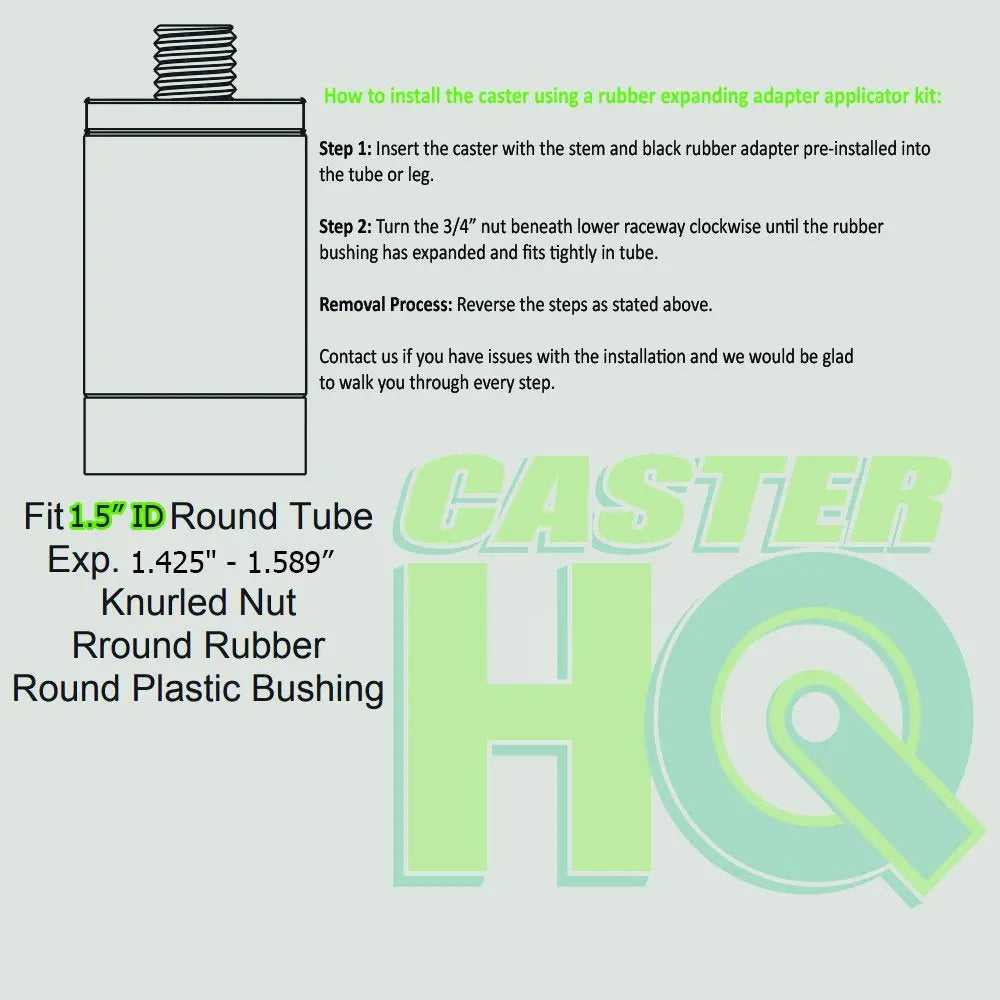 Set of 4 CasterHQ Brand Casters for all Commercial Kitchen Prep Tables with a 1-1/2" Inner Diameter Leg Tubing. Most Kitchen Prep Tables including Advance Tabco, Griddman and many more brands have 1-1/2" ID Tubing. These Casters are a premium upgrade Set. All 4 Casters are Total Locking, this means when the brake is engaged it locks both the wheel and swivel raceway simultaneously making these casters completely stationary. These casters are both NSF approved and listed and RoHs Compliant. We are the number one supplier of total locking NSF Kitchen Prep Table Casters. Buy your commercial kitchen prep table casters from the best and you wont be disappointed.