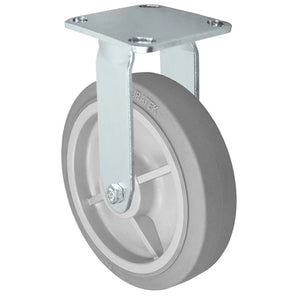 The Durastar Medium Heavy Duty S30 Series 8" x 2" Duratek High Tech Rubber Rigid Caster is engineered to meet the demands of heavy-duty applications. Featuring a robust 675 lb capacity and durable 4" x 4-1/2" stainless steel top plate, this caster ensures reliable performance and longevity in industrial, commercial, and warehouse environments.