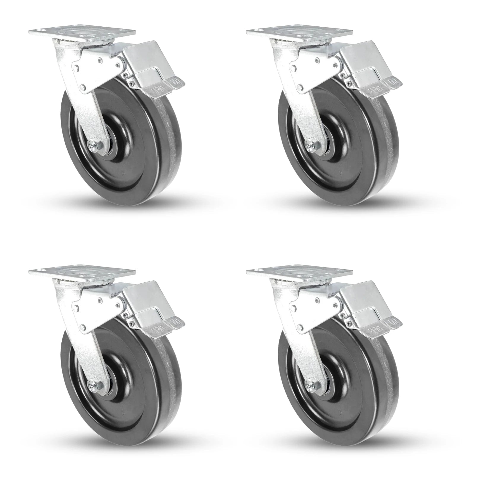 Enhance your equipment’s mobility with the **industry’s top-rated 8"x2" Phenolic Caster Set**. Engineered for **extreme strength**, these casters **effortlessly handle 4,000 lbs** while ensuring **maximum stability** with **4 Total Locks**.