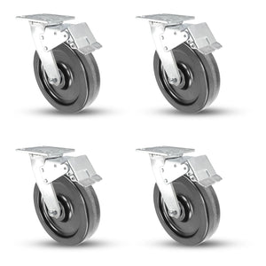 8"x 2" Heavy-Duty Phenolic Caster Set - 4 Total Locks | 4,000 Lbs Capacity