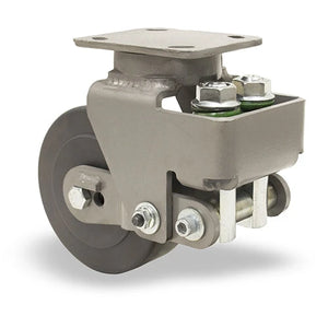 This caster is spring-loaded for optimal shock absorption, ensuring the protection of your equipment and silent operation. Its corrosion-resistant build promises long-term service, even in demanding industrial environments.