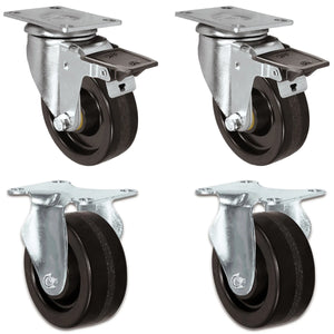 Phenolic wheels have a high resistance to impact damage while providing protection for floors in commercial and industrial settings. These easy rolling wheels are quieter than comparable steel wheels. Phenolic resin wheels feature a resistance to water, oil, and grease. Being non-metallic, these resin wheels are also spark proof.