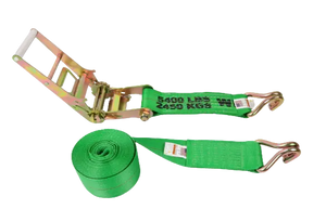 The robust wire hooks provide strong, dependable connections to cargo, preventing slippage and movement during transit. This high-grade strap is designed for easy use, featuring a user-friendly ratchet mechanism that allows for quick tightening and release of the tension, making load securement efficient and hassle-free.