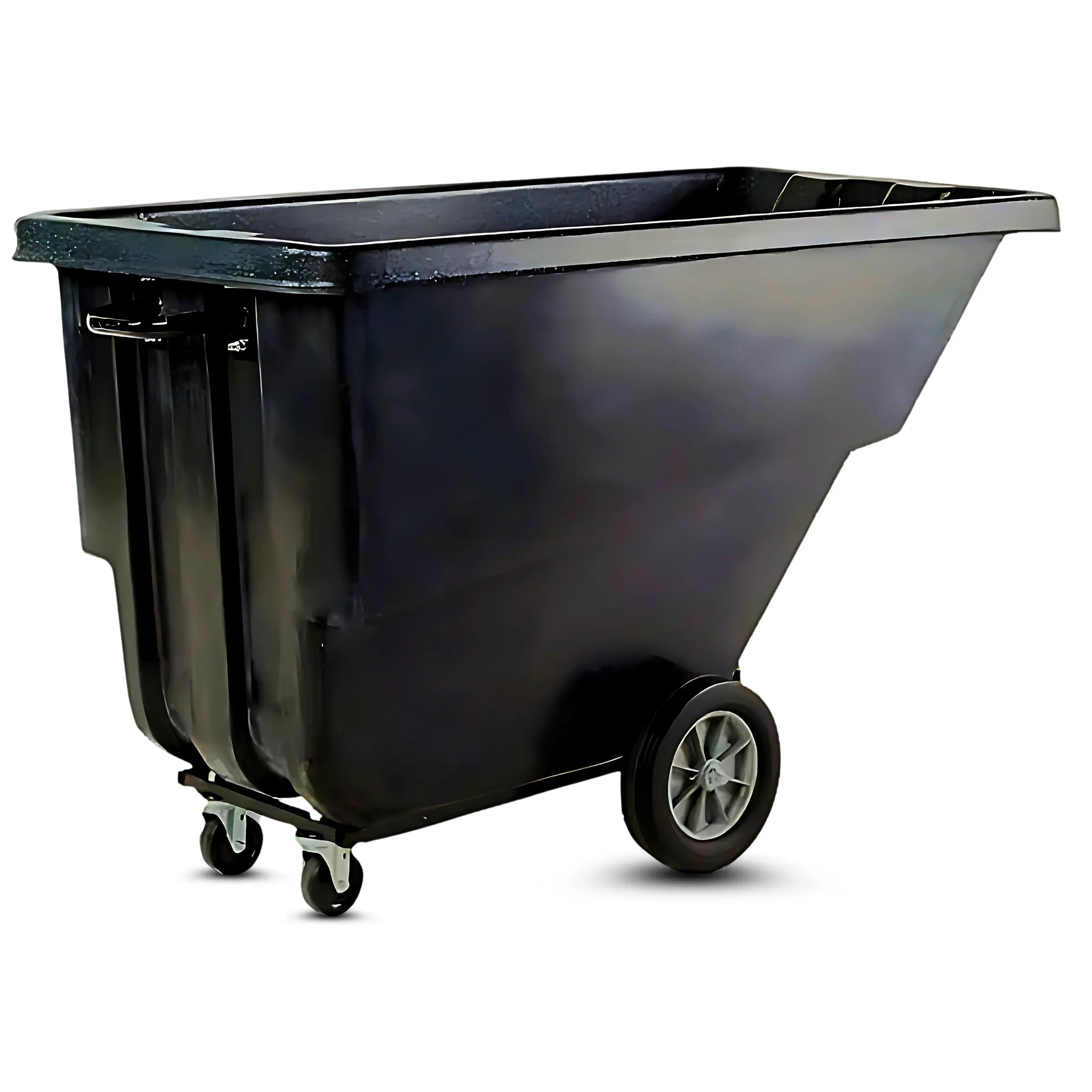 This 1 cubic yard tilt truck supports up to 1,200 lbs, making it suitable for heavy industrial and commercial use.