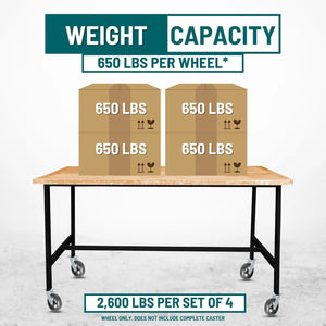 Each caster supports 600 lbs, making it a heavy-duty solution for medium to high-load applications.