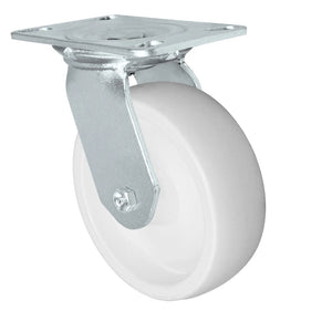 Our team of caster specialists recommends the 6" x 2" Polyolefin wheel for its excellent floor protection, impact resistance, and quiet operation. The swivel design enhances maneuverability in tight spaces, making it ideal for dynamic work environments. For maximum longevity and performance, we suggest regular maintenance, including periodic lubrication of the swivel raceway and checking for debris buildup around the wheel.