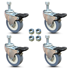 Heavy Duty Locking Casters - 2.5 Inch Gray Swivel Caster Wheels, 3/8-Inch Stem Dia., 1-Inch Stem Length, Threaded Stem Casters, Set of 4